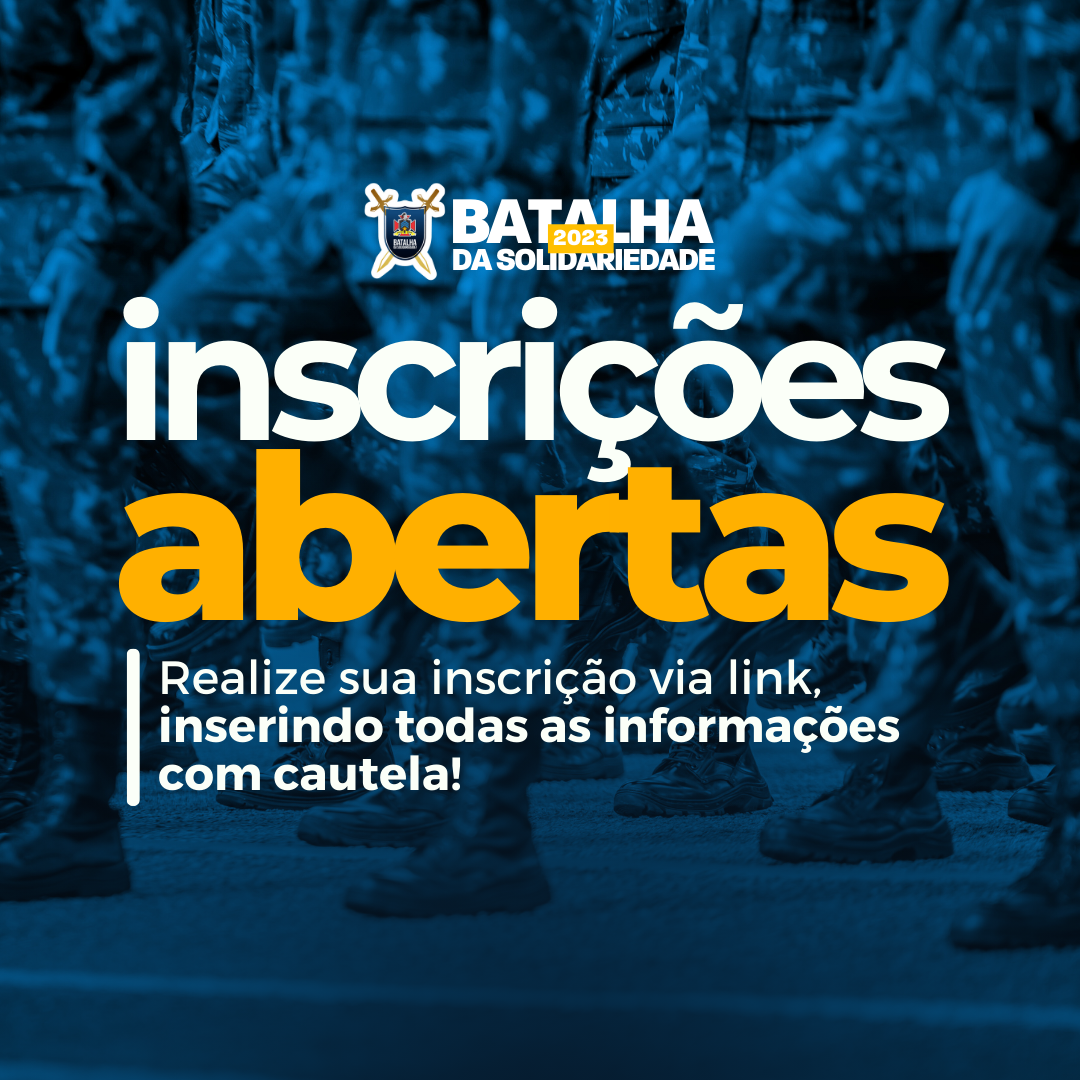 INSCRIÇÕES ABERTAS – BATALHA DA SOLIDARIEDADE 💙